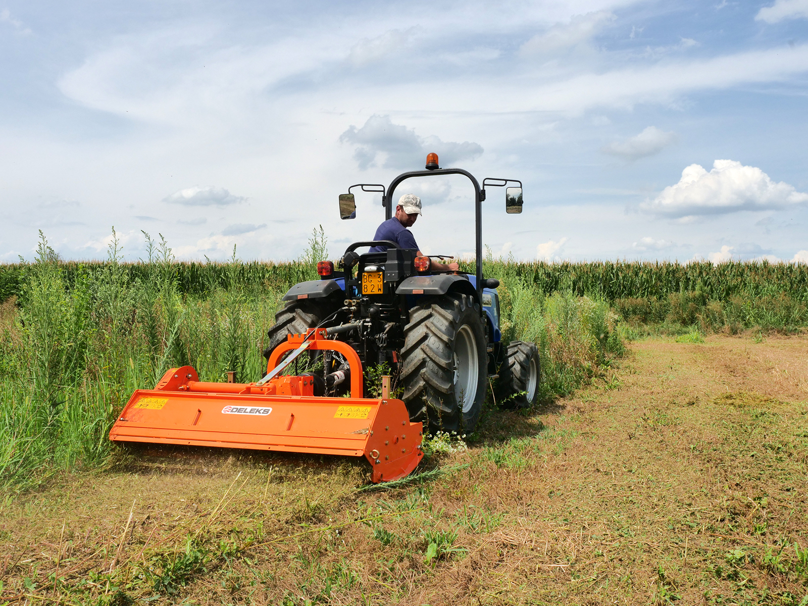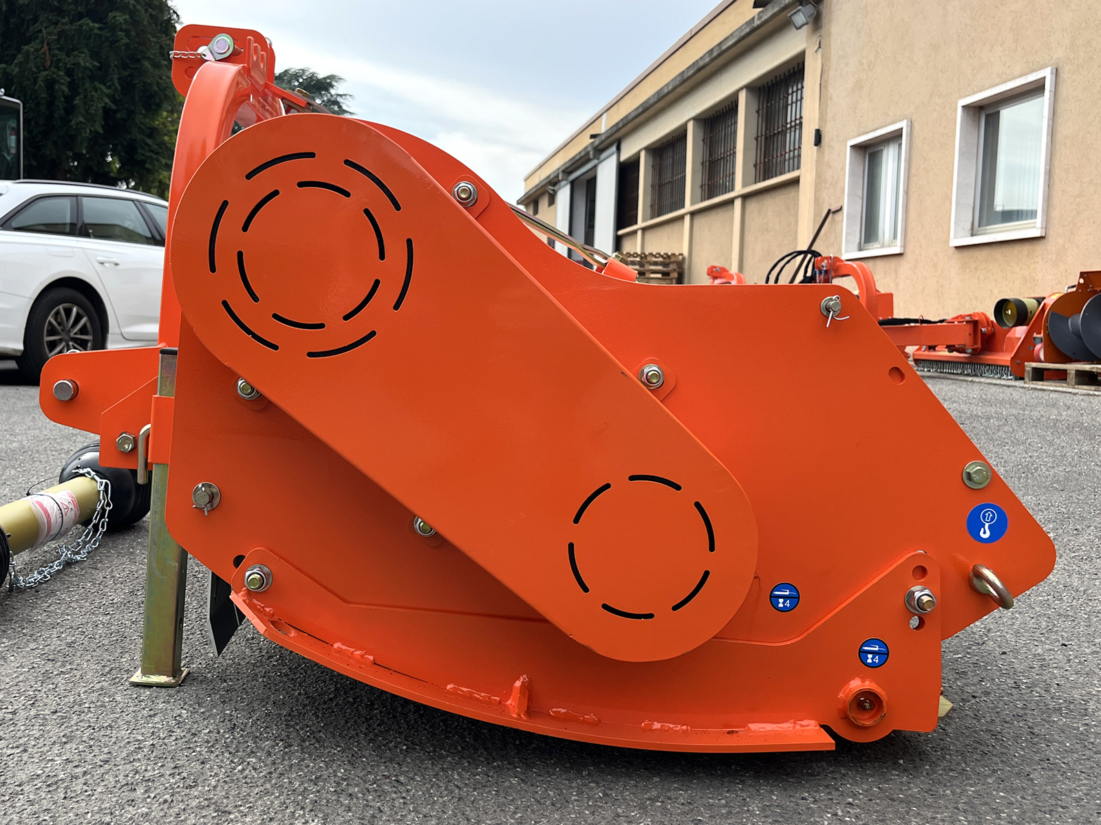 The TIGRE-180 flail mower has been designed for professional use in fields, meadows, parks, orchards etc. It is ideal mulching grass but is strong enough to handle shredding corn storks and heavy rushes. Thanks to its solid frame and 160.0 mm rotor it can be used for work on the flat ground and verges. Compatible with all brands of tractors with Cat. 1-2 three-point linkage e.g Fiat, Ford, New Holland T3-T4, John Deere 3-4, Lamborghini Ego, Deutz-Fahr, Landini, Kubota, Goldoni, etc.