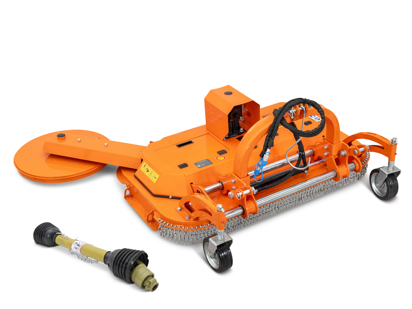 Tondeuse de finition 8 lames DELEKS® DM150-INTERFILA pour tracteur, avec disque inter-rangées de 60cm, largeur de travail 150cm, déport hydraulique, cardan CE à roue libre.