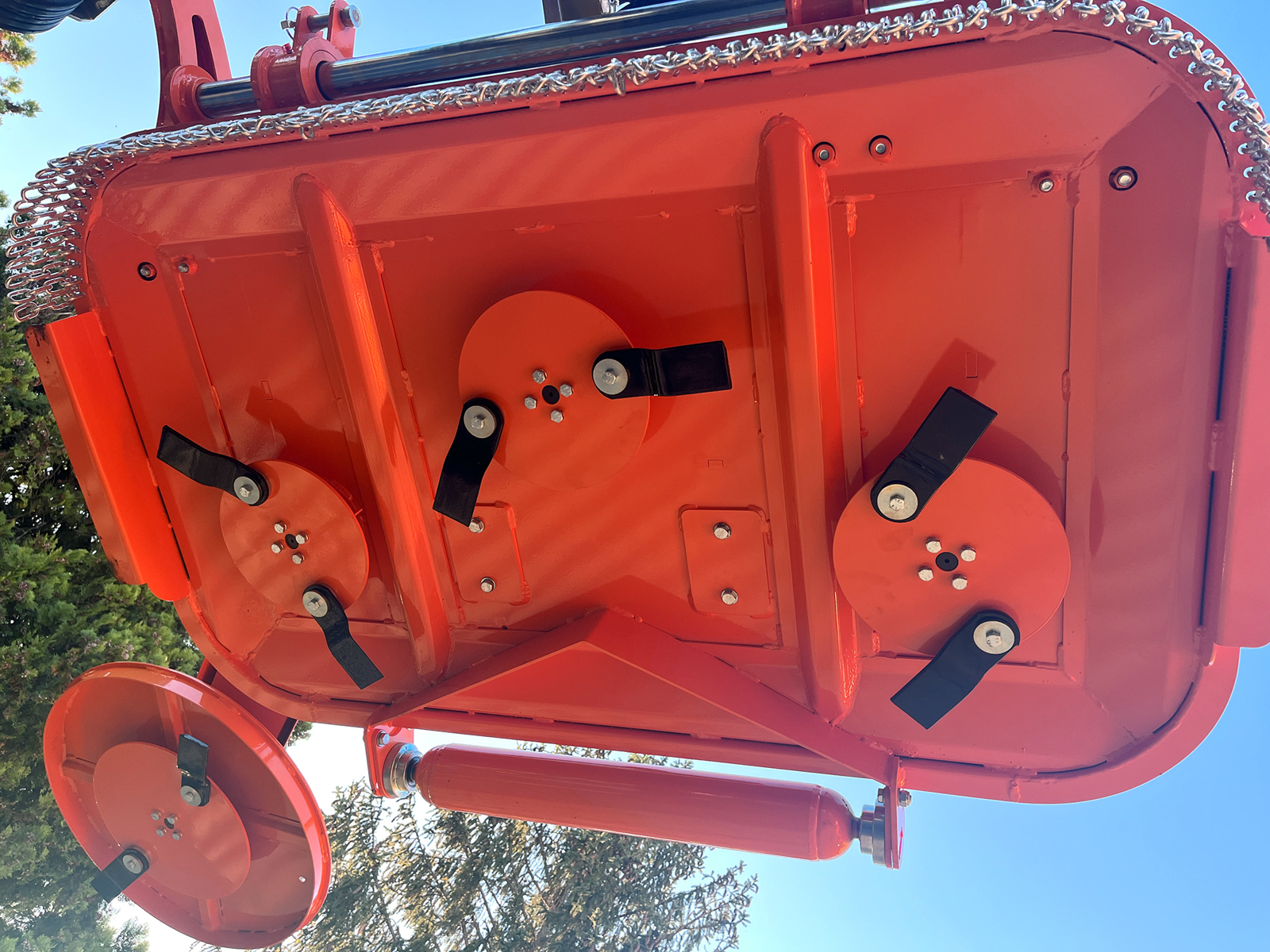Tondeuse portée pour tracteur, déportable, avec disque inter-rangées