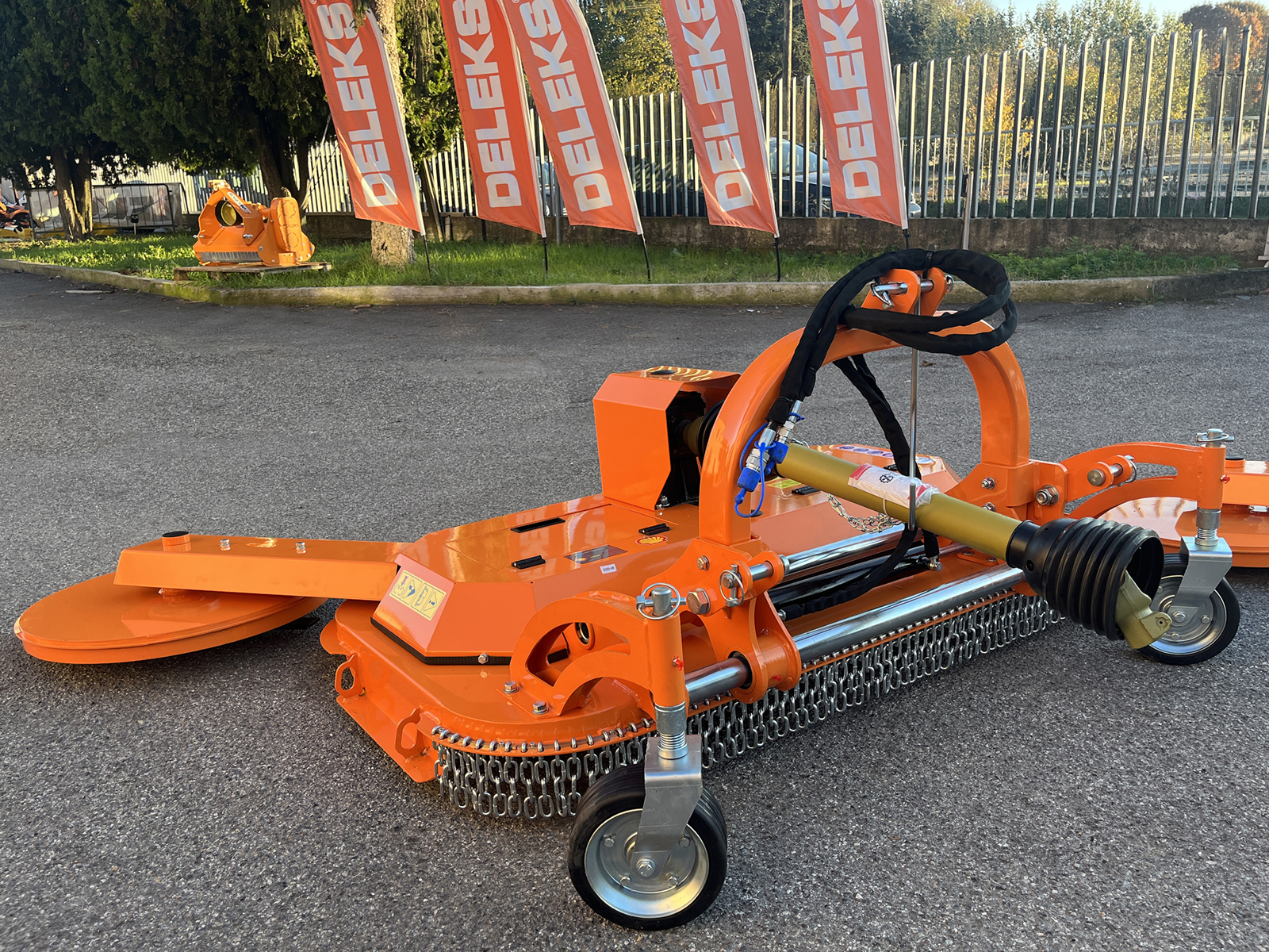 DELEKS® DM150-INTERFILA Tondeuse avec disque interfilaire, lames horizontales et échappement arrière, pour le fauchage de l’herbe dans les rangées du verger et de la vigne, dans les parcs et les espaces verts en général.