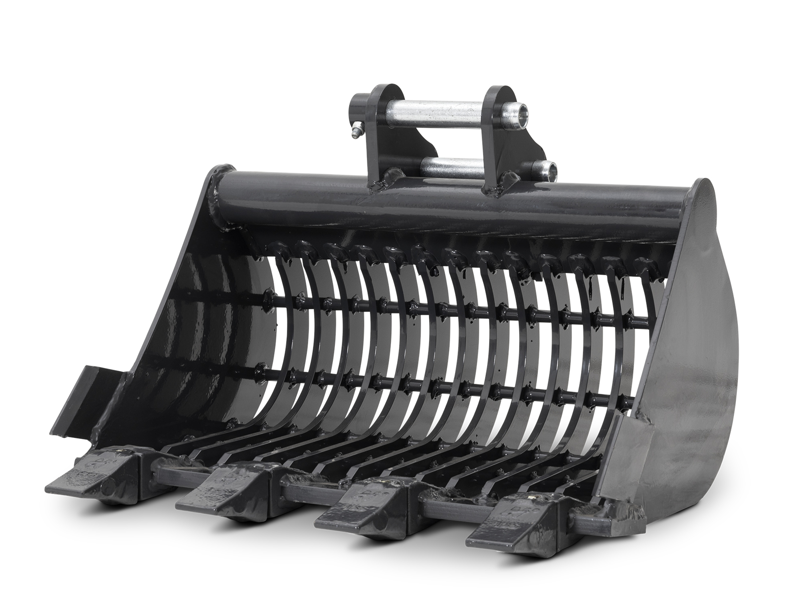 Shaker bucket, Riddle Bucket, Skeleton Bucket specifically designed for DELEKS®S100 and KUBOTA S100, K008-3, U10-3, K008-5, U10-5 mini excavators. Mainly used for river dredging, cleaning water grass, etc…