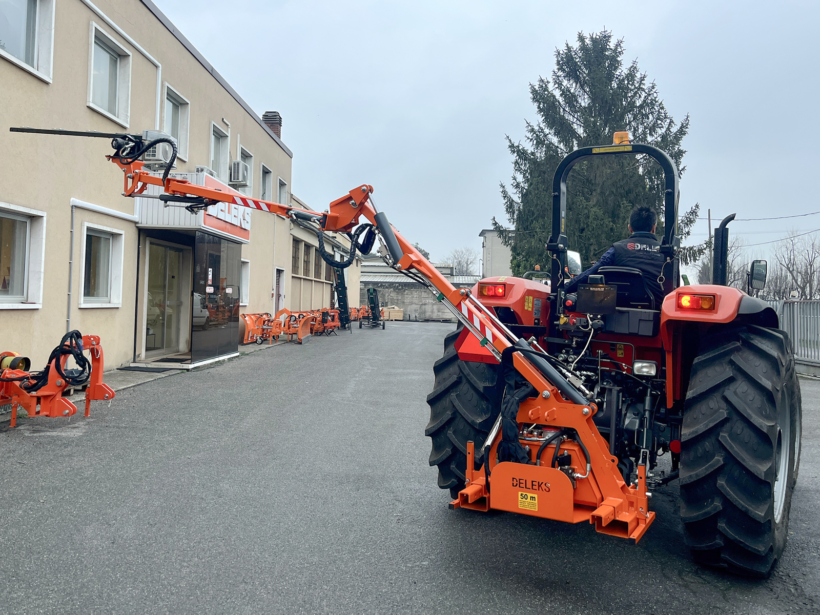 Hydraulic hedge cutter / boom mower for tractor - DELEKS® FALCO-H - double hydraulic PTO pump system - own hydraulic system, runs completely off the PTO - can mount a 130-160 or 180cm hedge trimmer bar.