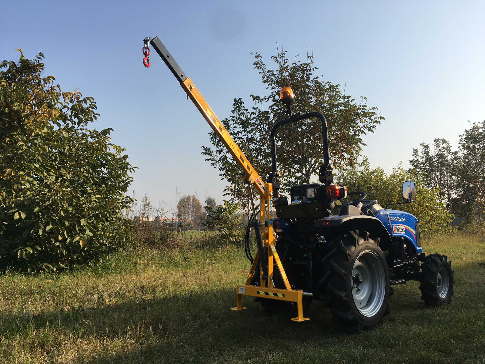 Hydraulic Crane For Compact Tractors KUBOTA, JOHN DEERE… DELEKS®- Arm can be extended in three steps.