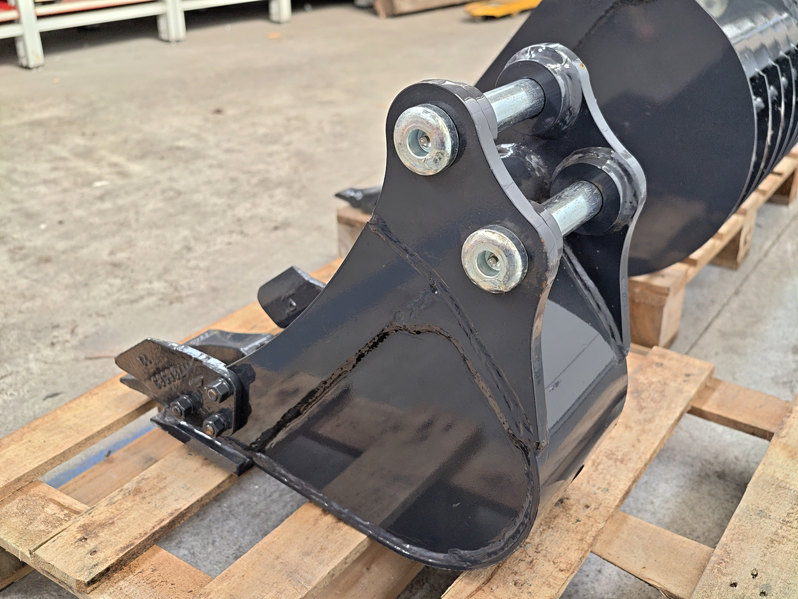 20 cm bucket designed for S180 mini excavators, ideal for digging, material handling and leveling. Made of high-strength structural steel with reinforcements in high-wear areas. The cutting edge profile and internal geometry are engineered to optimize soil penetration and ensure efficient material discharge. Continuous welds and the reinforced mounting plate guarantee excellent torsional rigidity even under heavy-duty conditions.