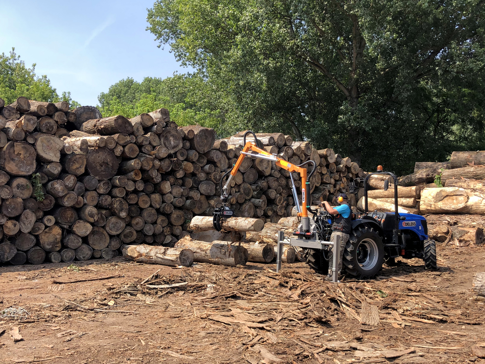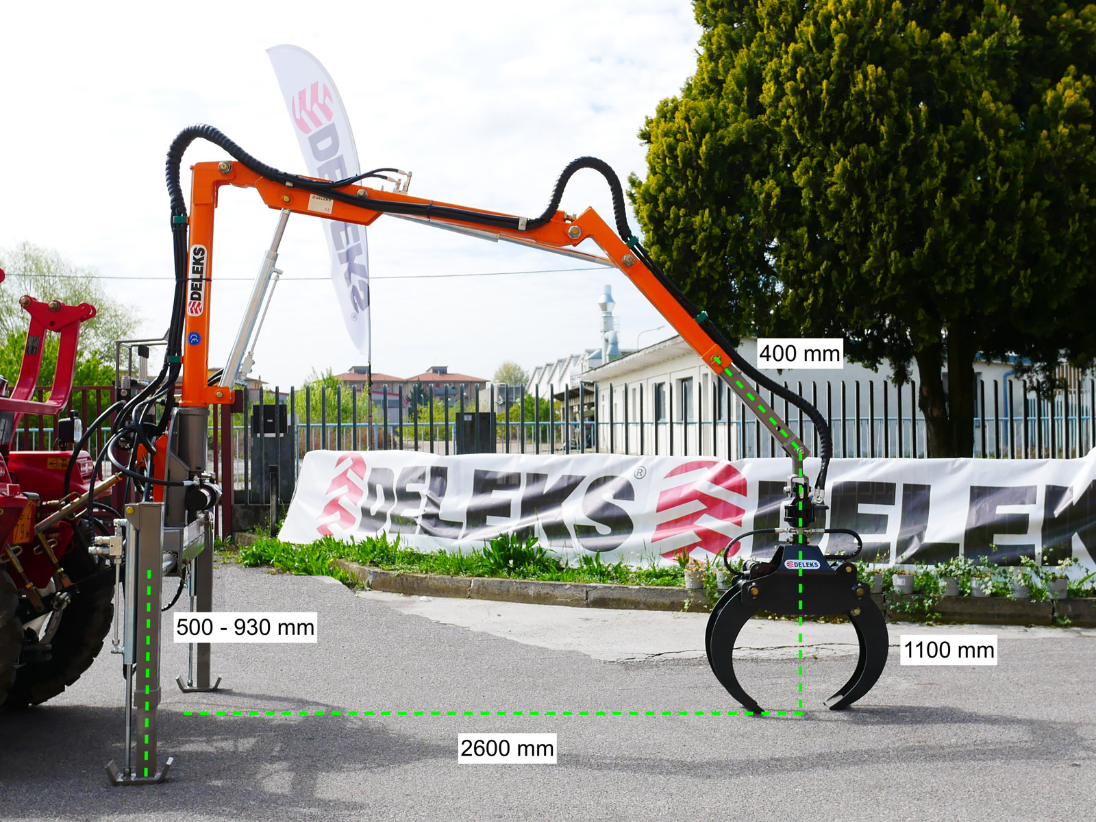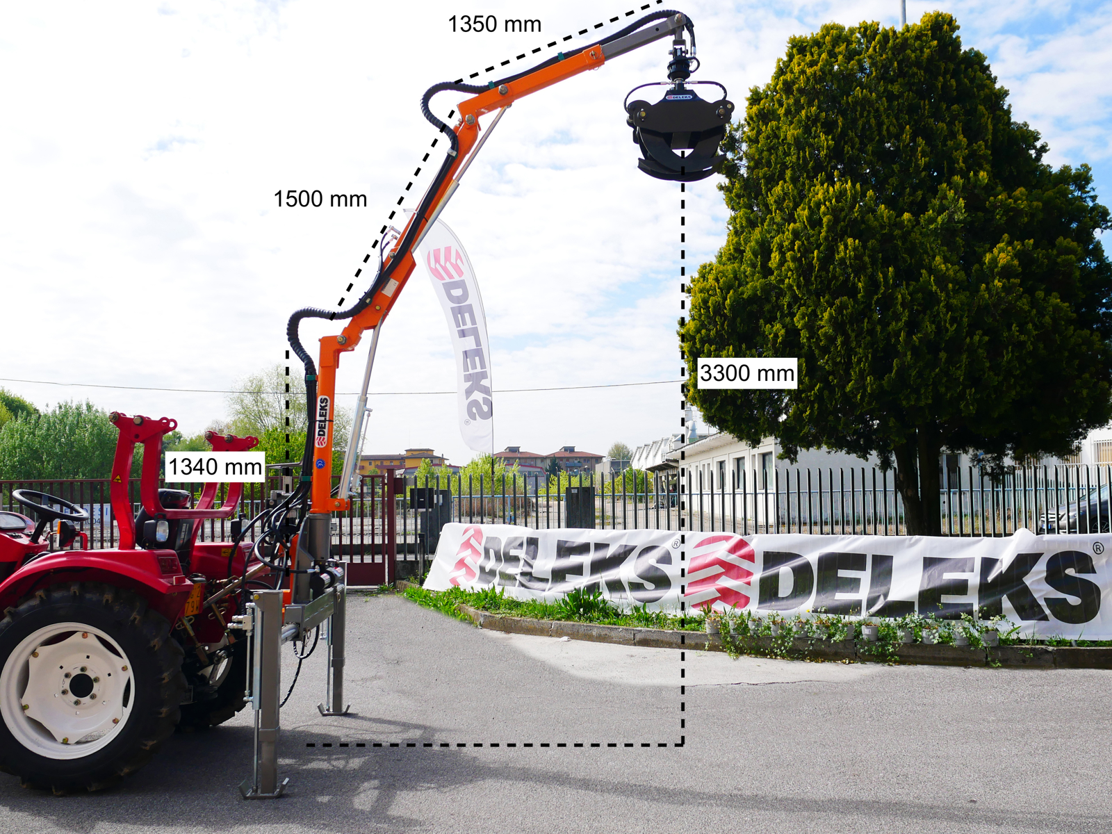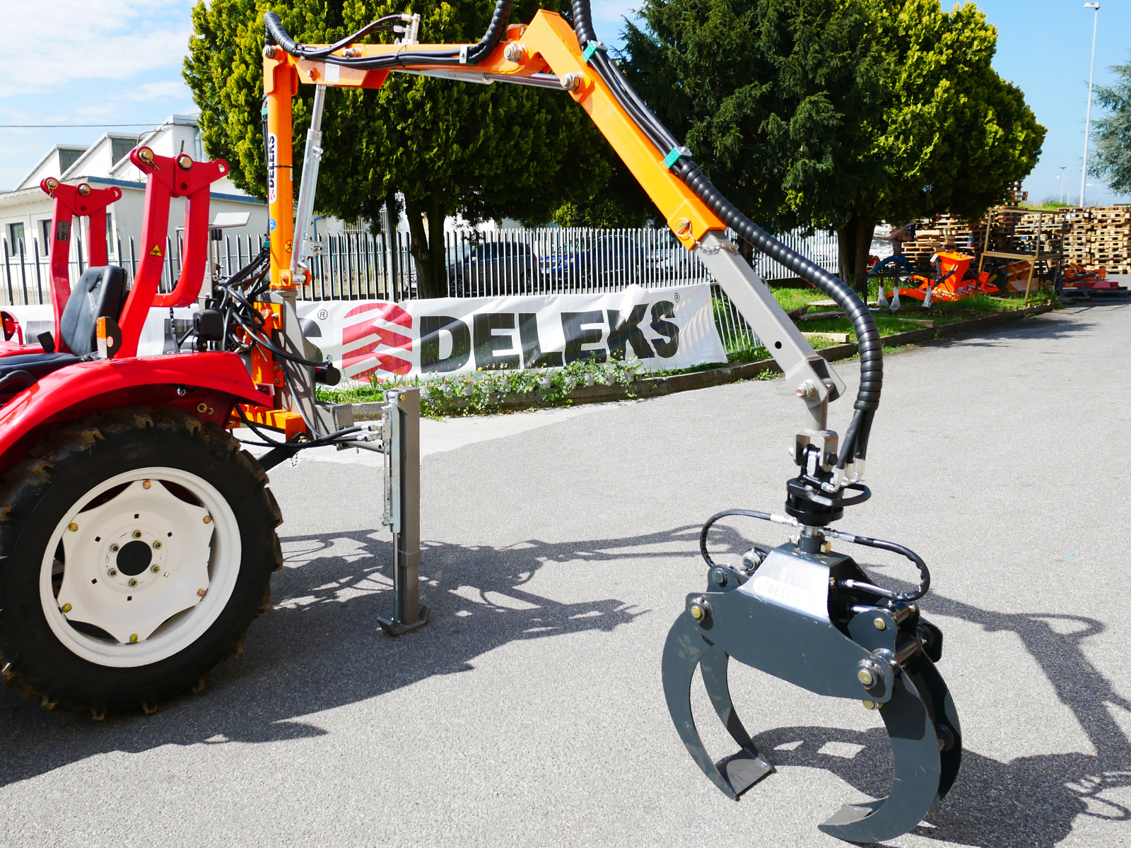 Tractor mounted timber crane, forestry crane - DELEKS®- Hydraulic parts MADE IN ITALY - DK10 Log Grapple with GR10 Rotor Lombarda Ingranaggi®