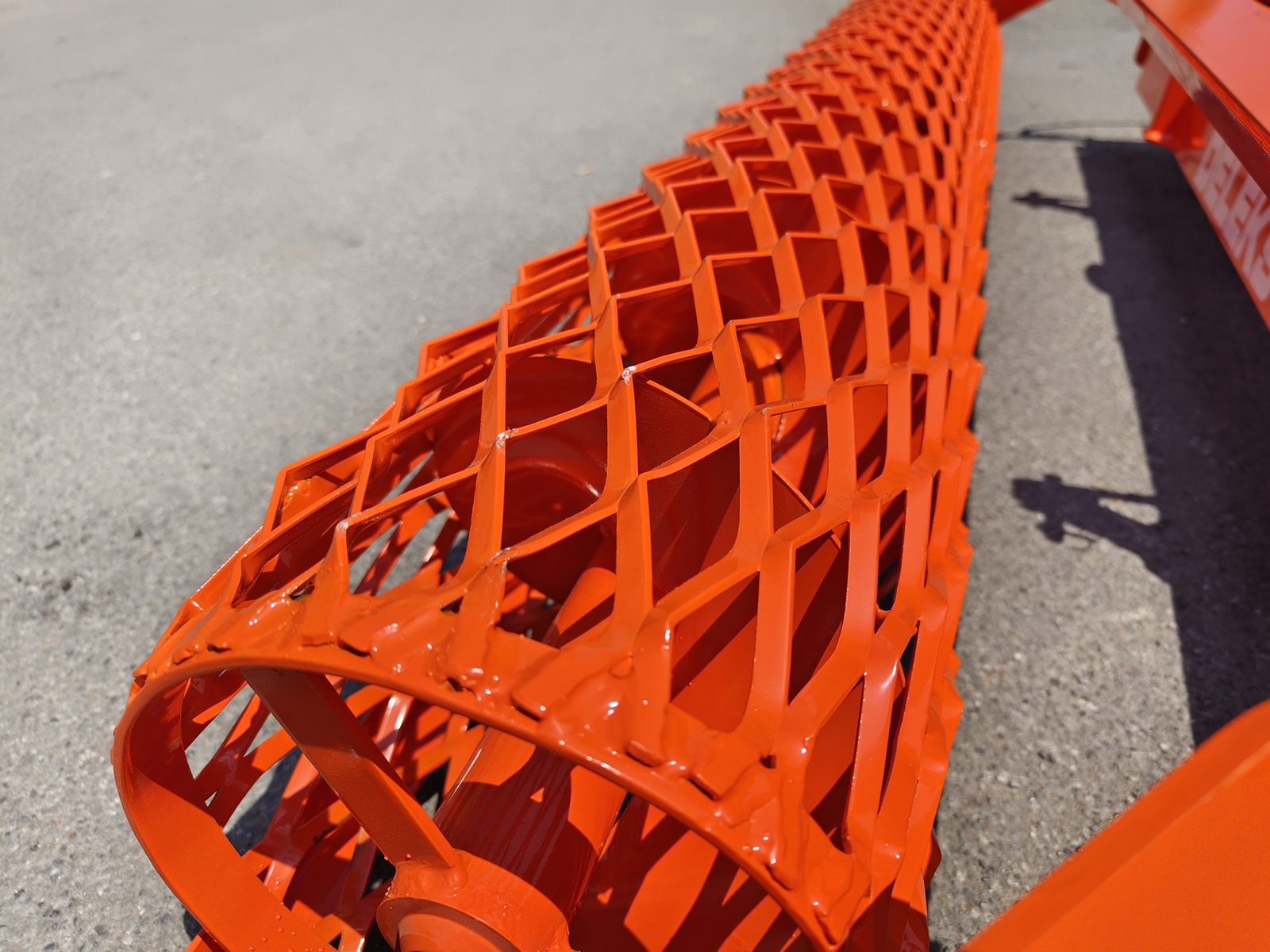 DELEKS® Power Harrow 165cm for tractors from 22 to 52 kW (30-70 HP), equipped with standard rear net roller (grit roller available as an optional) and single speed gearbox for P.T.O. 540 r.p.m.