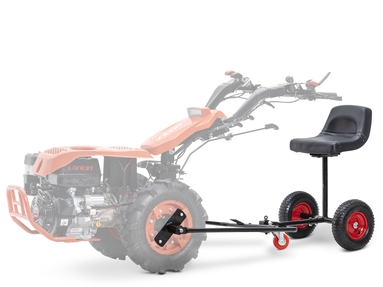 The DELEKS® Sulky cart is an accessory designed to allow the operator to work comfortably while seated when using the walk-behind tractor in front-mounted configuration, improving ergonomics, comfort and control during prolonged operations.