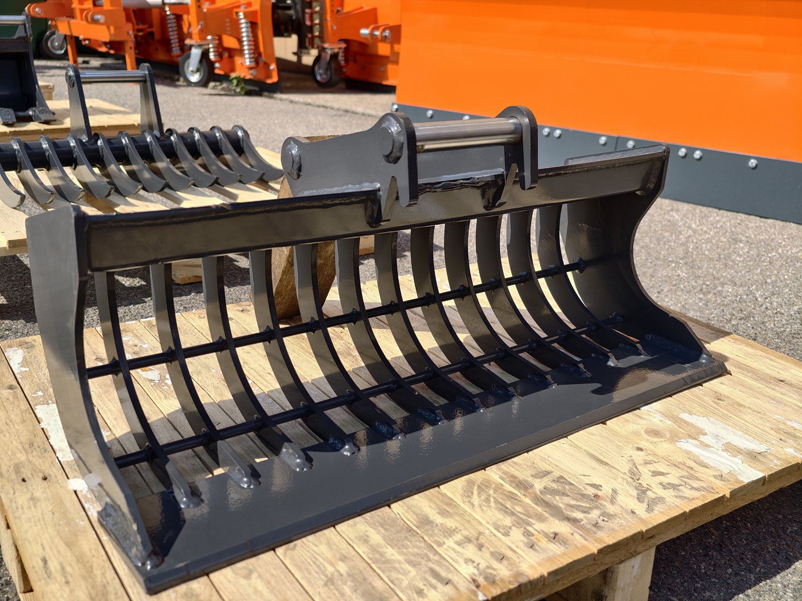 These buckets feature vertical riddling tines and tine braces for increased strength.