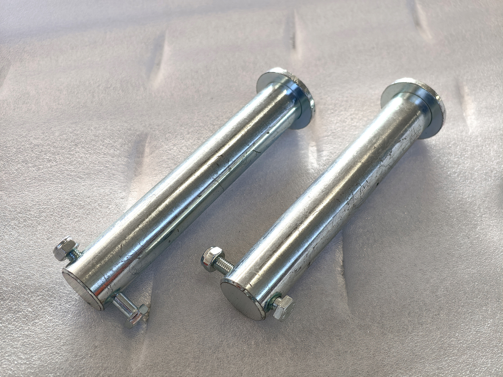 Pair of ø40 mm pins for mini excavator arm with S380 hitch, designed for the kinematic linkage of attachments such as buckets, rippers, rakes, augers and other compatible tools. The pins are manufactured through precision machining from high-strength steel, with ground surfaces to ensure concentricity, uniform finish and reduced friction at rotation points.