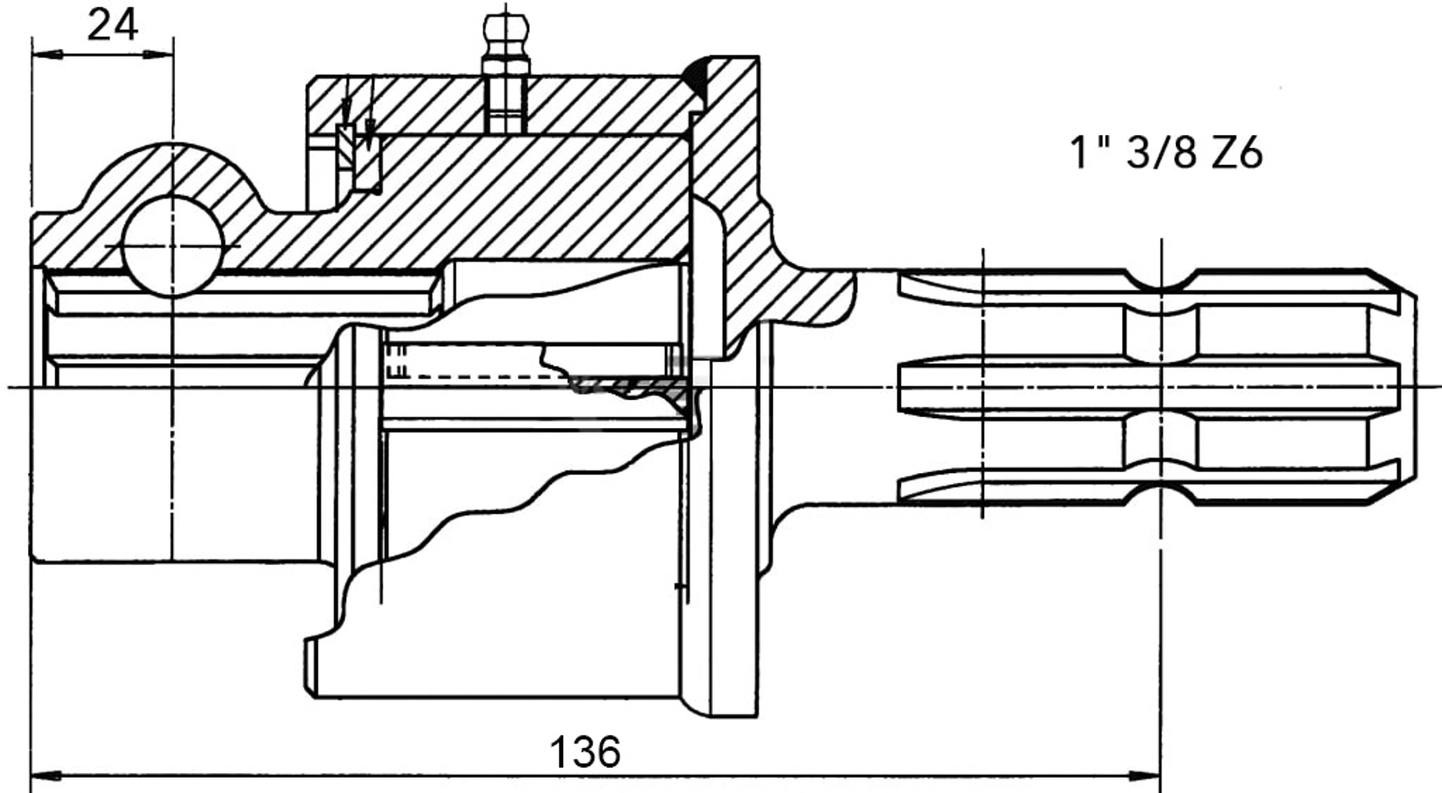 This device transmit power in right direction of rotation. It is recommended for those machines which, when suddenly stopped, are subject to a large inertia force. It is mounted on the implement side. If another safety device is fitted to the same drive shaft, then the RL overrunning clutch should be mounted on the tractor side.