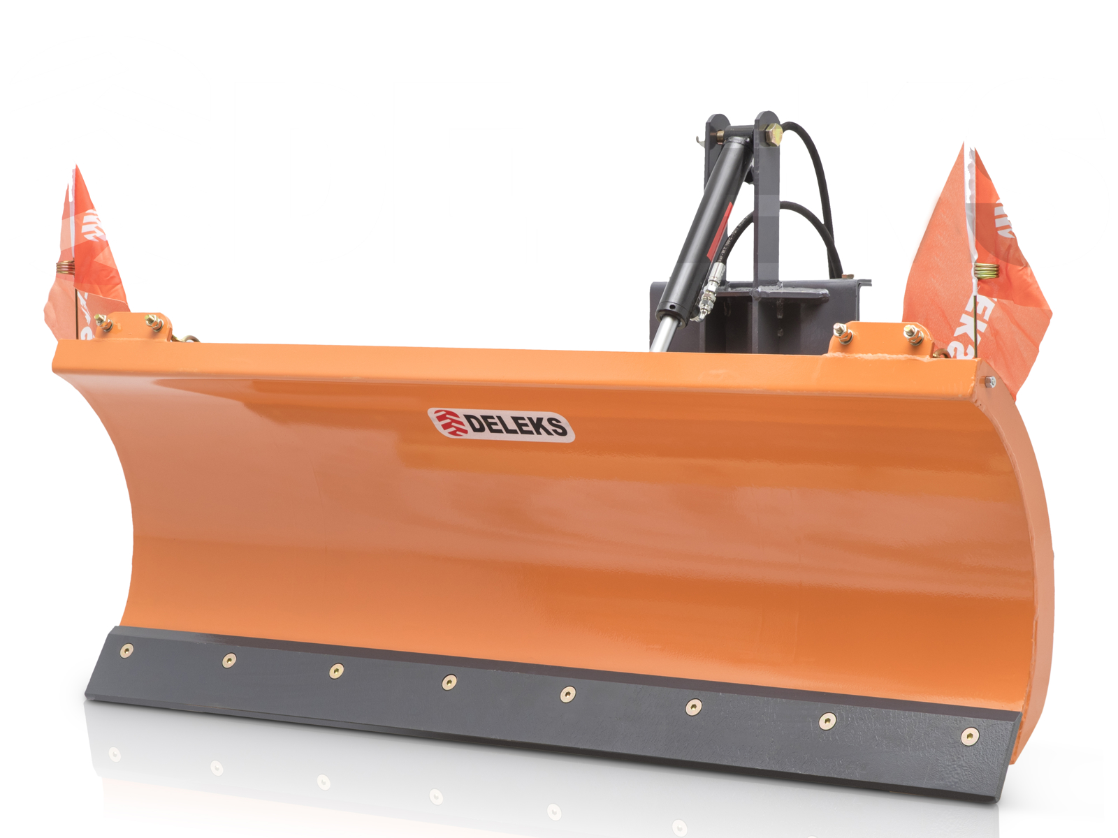 DELEKS® Front snow blade with universal plate, for tractors from 30 to 50hp with guidance right / left hand (hydraulic optional) and hydraulic lifting of the blade with torque tube 4.0m. The plough is attached to the tractor with a quick attachment mounting plate.