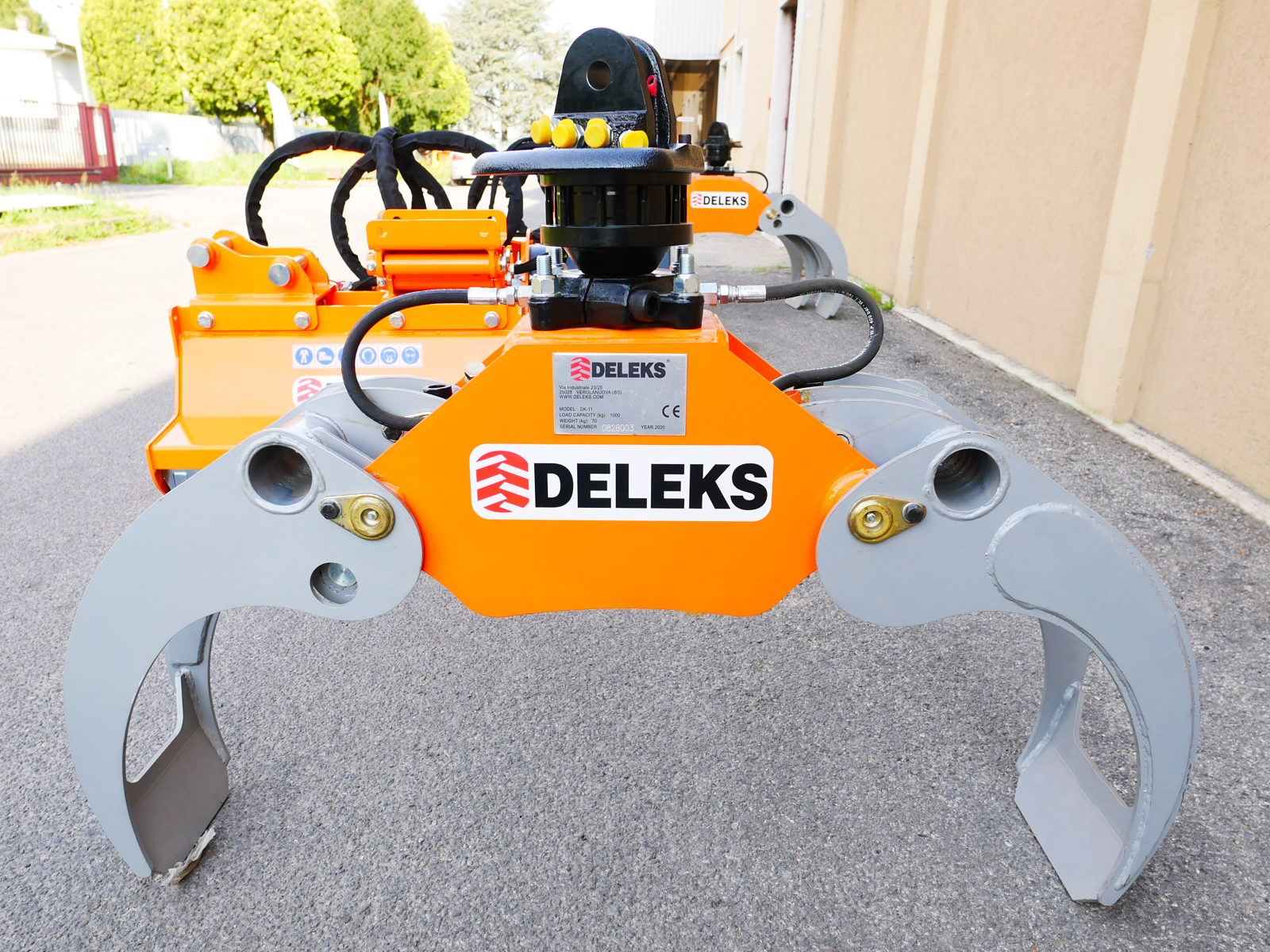 Log Grapple DELEKS® DK-11C + Flanged Lombarda Ingranaggi Rotator for Mini Diggers and Forest Cranes 1.8 – 3.5 Ton