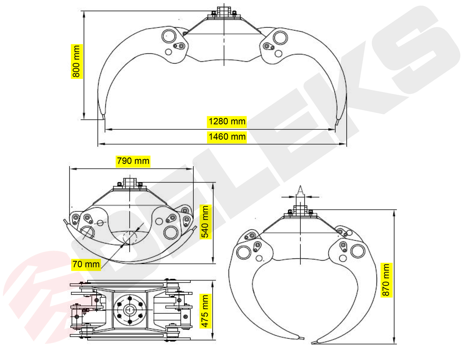 Rotator: Lombarda Ingranaggi's GR3PF rotators are powerful, reliable and robust. They are engineered to perform in heavy duty work environments with maximal efficiency and minimal unscheduled downtime as they have a loading capacity 3000kg. Grapple needs 4 hydraulic outlets to function or additionally, Rexroth Bosh electro-valve 6 ways (made in Germany), can be supplied to reduce the amount of outlets needed to two. EC Conformity, 2 Year Warranty.