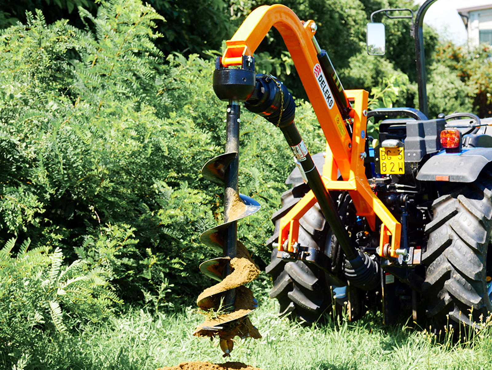 Heavy Post Hole Digger for tractors -DELEKS® - with PTO shaft and Hydraulic arm cylinder with pipes.