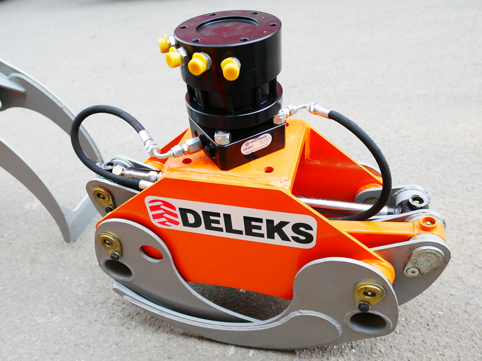 Log Grapple for Mini Diggers and Forest Cranes 1.8 – 3.5 Ton - DELEKS® DK-11C + Flanged Lombarda Ingranaggi Rotator.