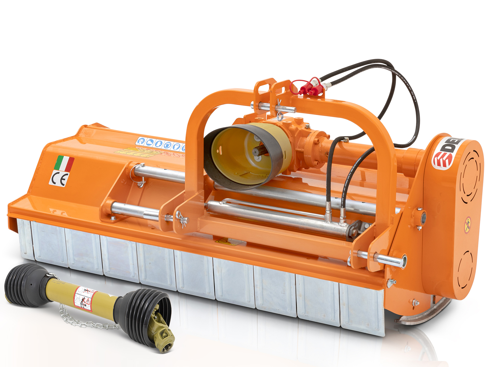 Shredder with hammers for orchard, vineyard, olive grove and uncultivated areas. Professional Flail Mower with hydraulic side shift.