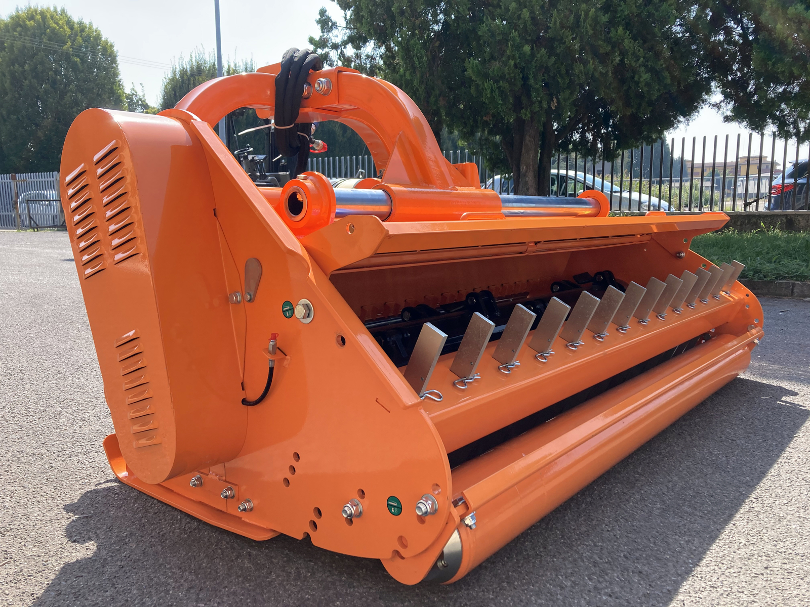 The TORO-200 heavy duty flail mower is particularly suitable for harvesting corn stalks, wheat, soybean, straw, vegetables in general, for the cleaning of uncultivated land (max 5-6 cm in diameter), it has a power of between 60 and 120 Hp and has a working width of 200 cm.