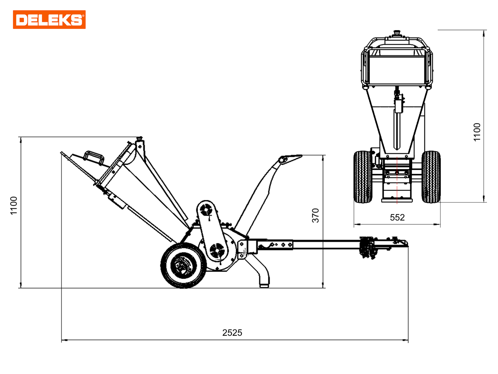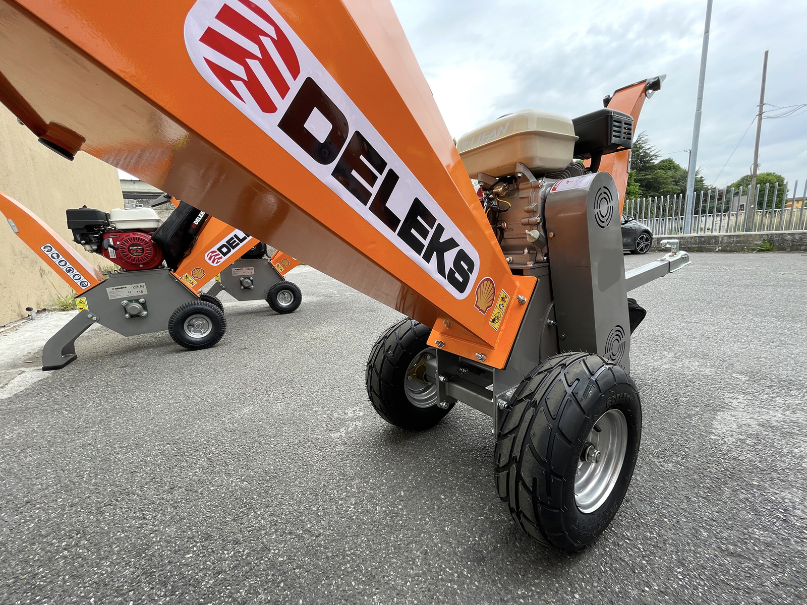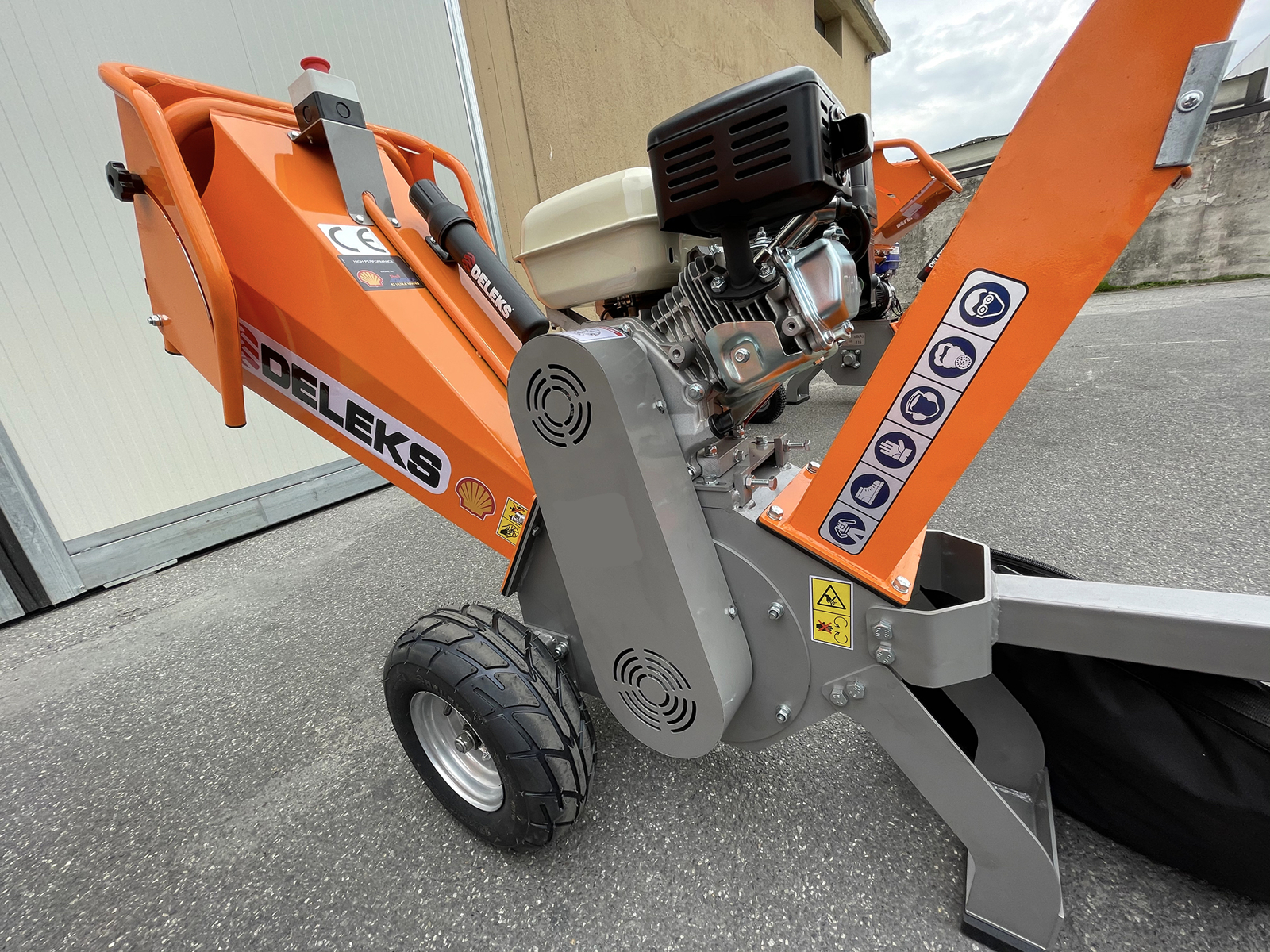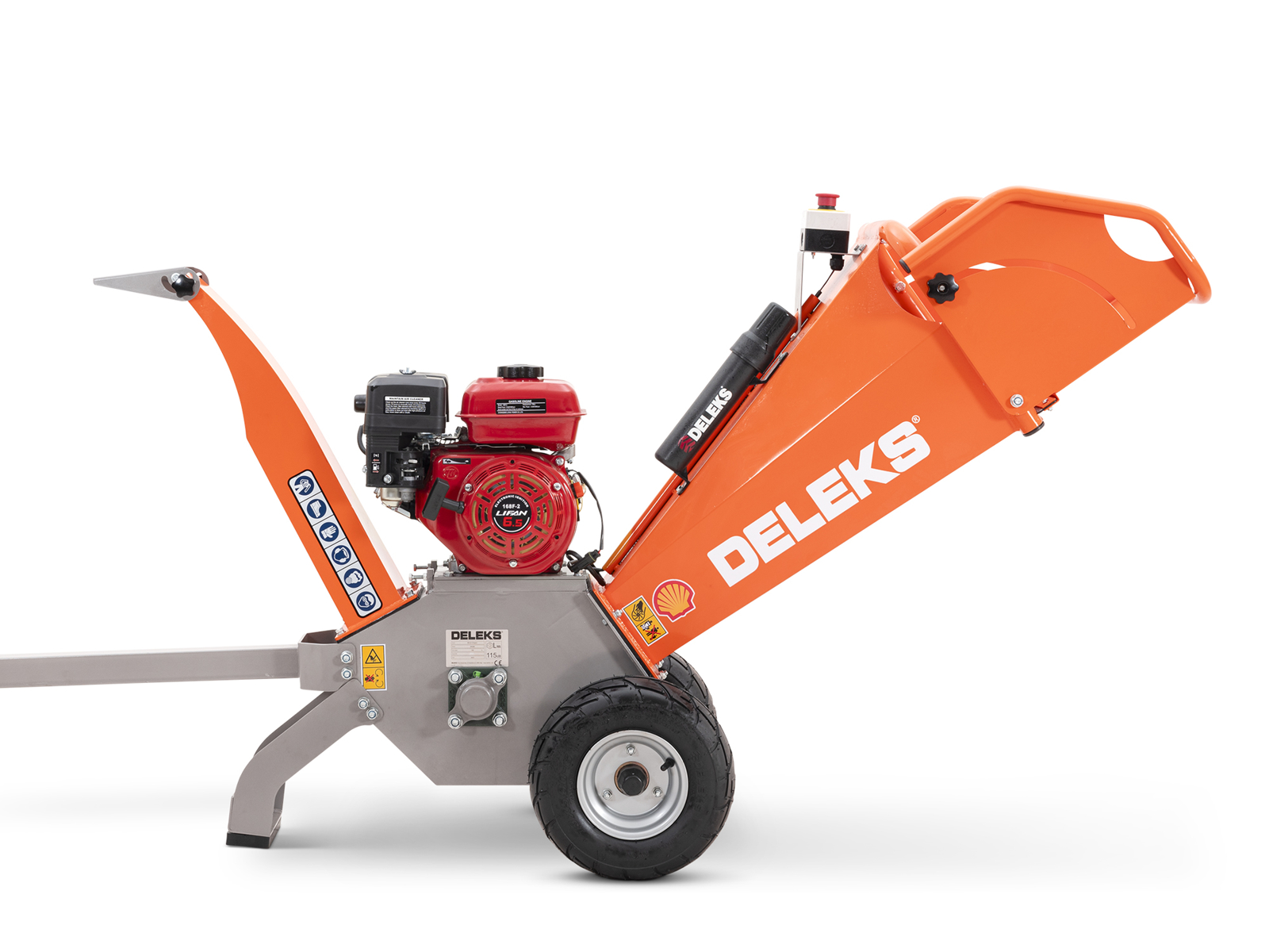 Professional Wood Chipper DELEKS DK-500-FL with 6.5 Hp engine, 4 stroke gasoline engine. 2 reversible knives of special steel.