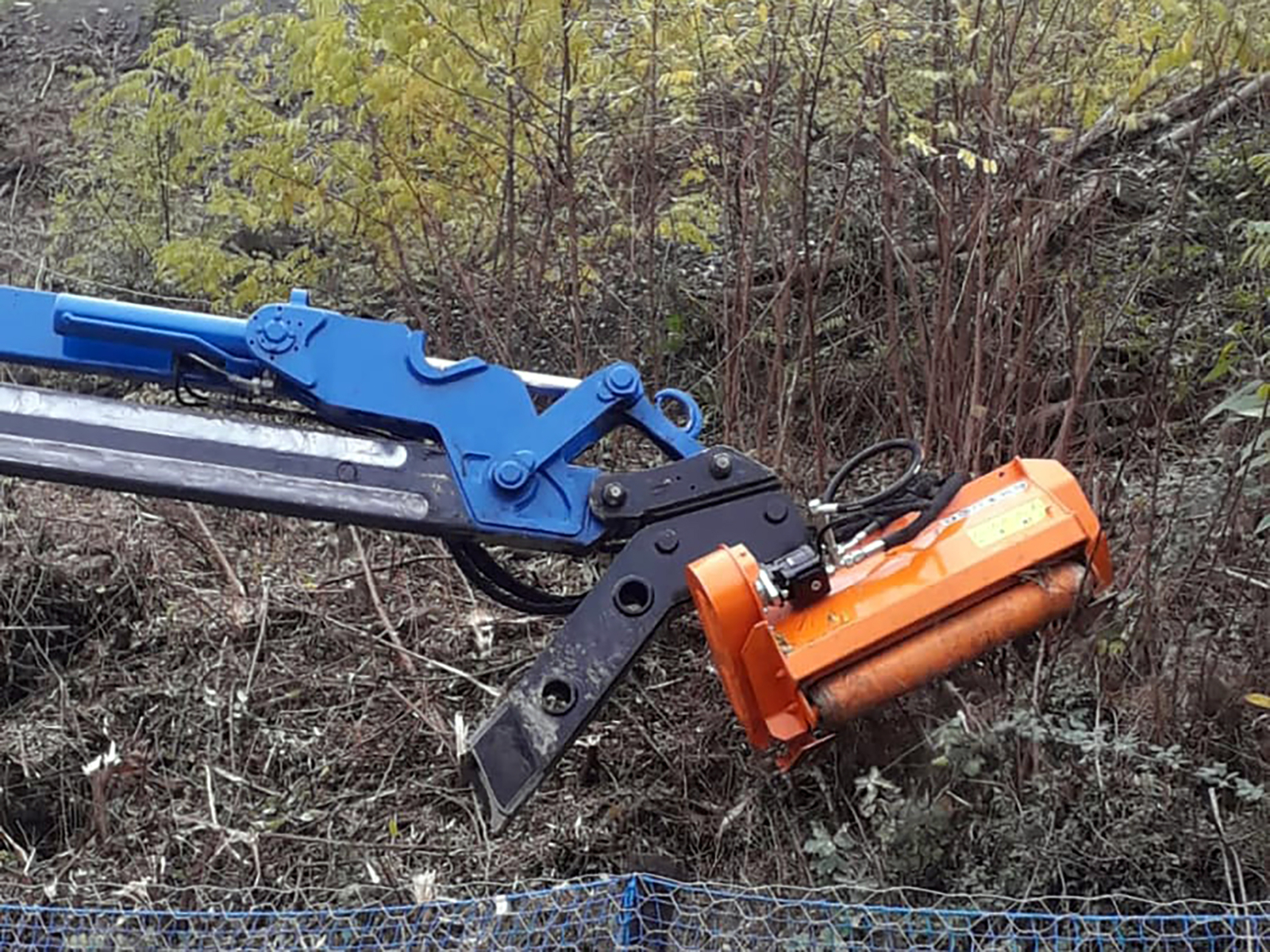 Hydraulic mulcher, brush-cutter for brambles, bushes, ditches, banks, embankments, branches. Suitable for cutting grass, trees and shrubs up to 5cm.