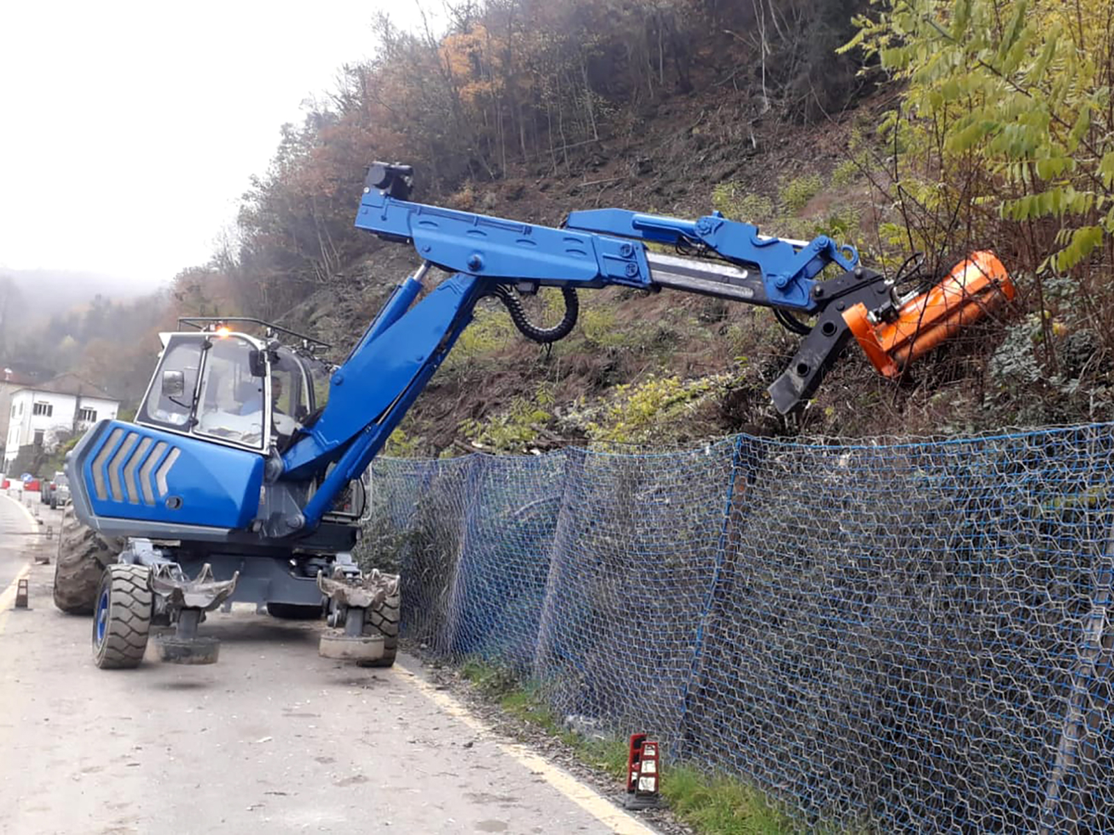 Hydraulic mulcher, brush-cutter for brambles, bushes, ditches, banks, embankments, branches. Suitable for cutting grass, trees and shrubs up to 5cm.