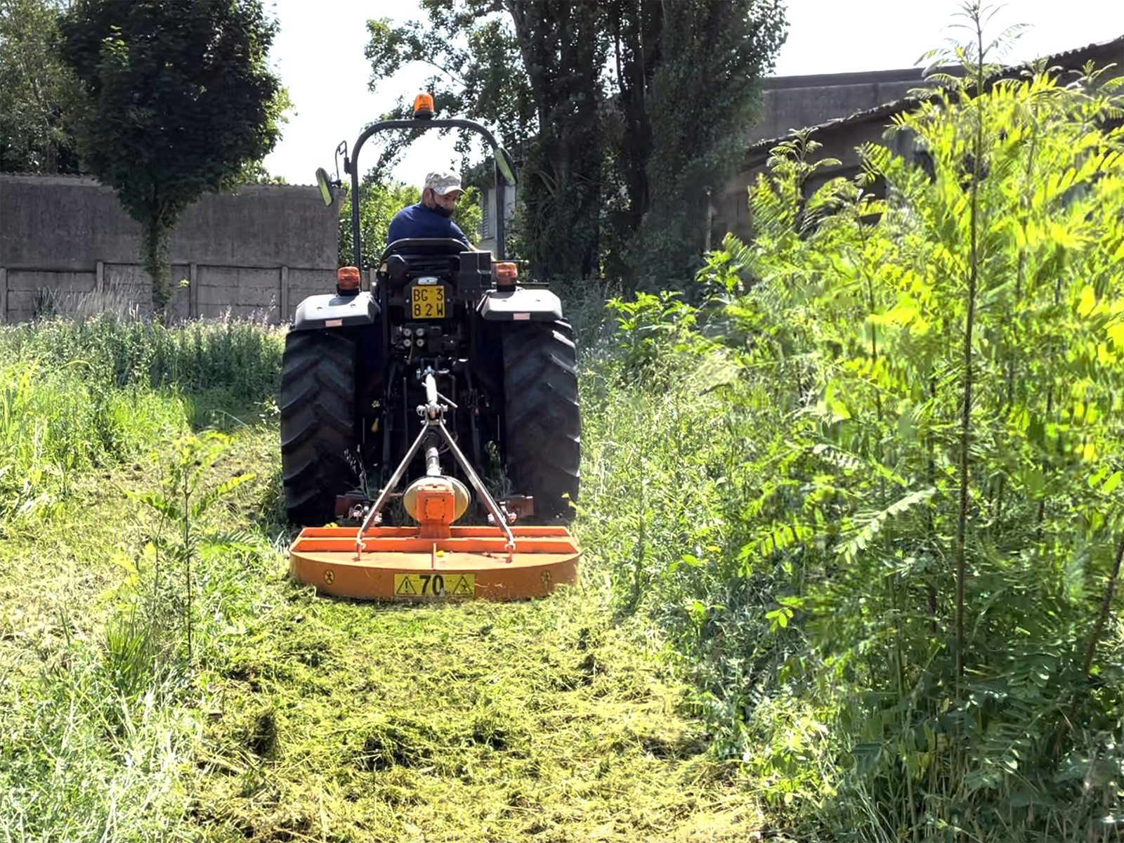Gyrobroyeur à chaine DELEKS® BUGGY-120C pour les tracteurs de 25 à 75 cv, idéal pour les zones non cultivées avec des branches et des ronces; zones avec des pierres et très irrégulières.