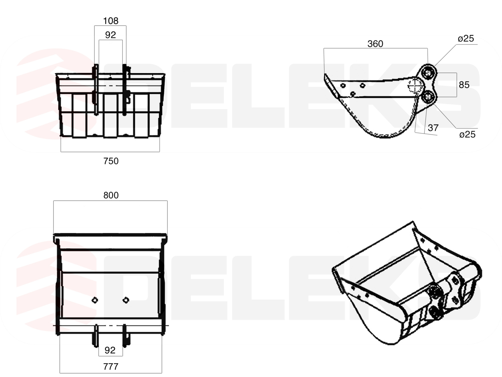 Bucket for miniexcavator M80/M90/M100/M120 - 80cm