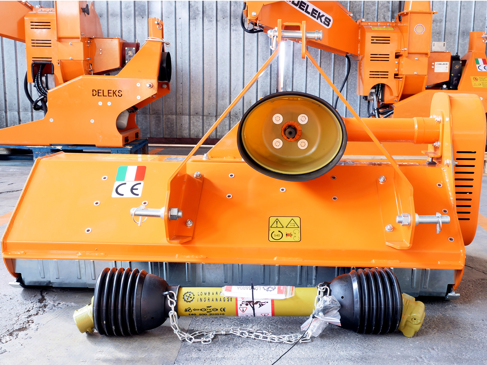 120cm working width, 160kg, Lombarda Ingranaggi Gearbox - DELEKS® LINCE-120 - Pto shaft CE included, 330g heat forged hammers to shred vegetation up to 2,0-3,0 cm thick.