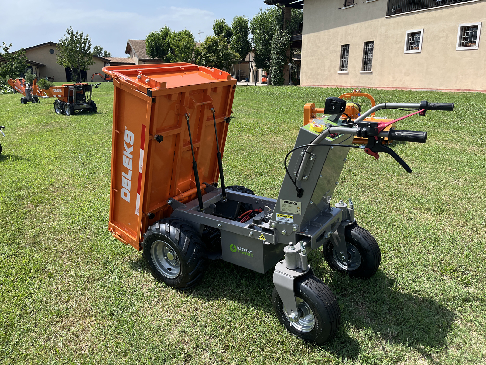DELEKS® XE-500f electrified wheelbarrow for wooden logs - Minidumper with electric motor, manual tipping, load 500kg.