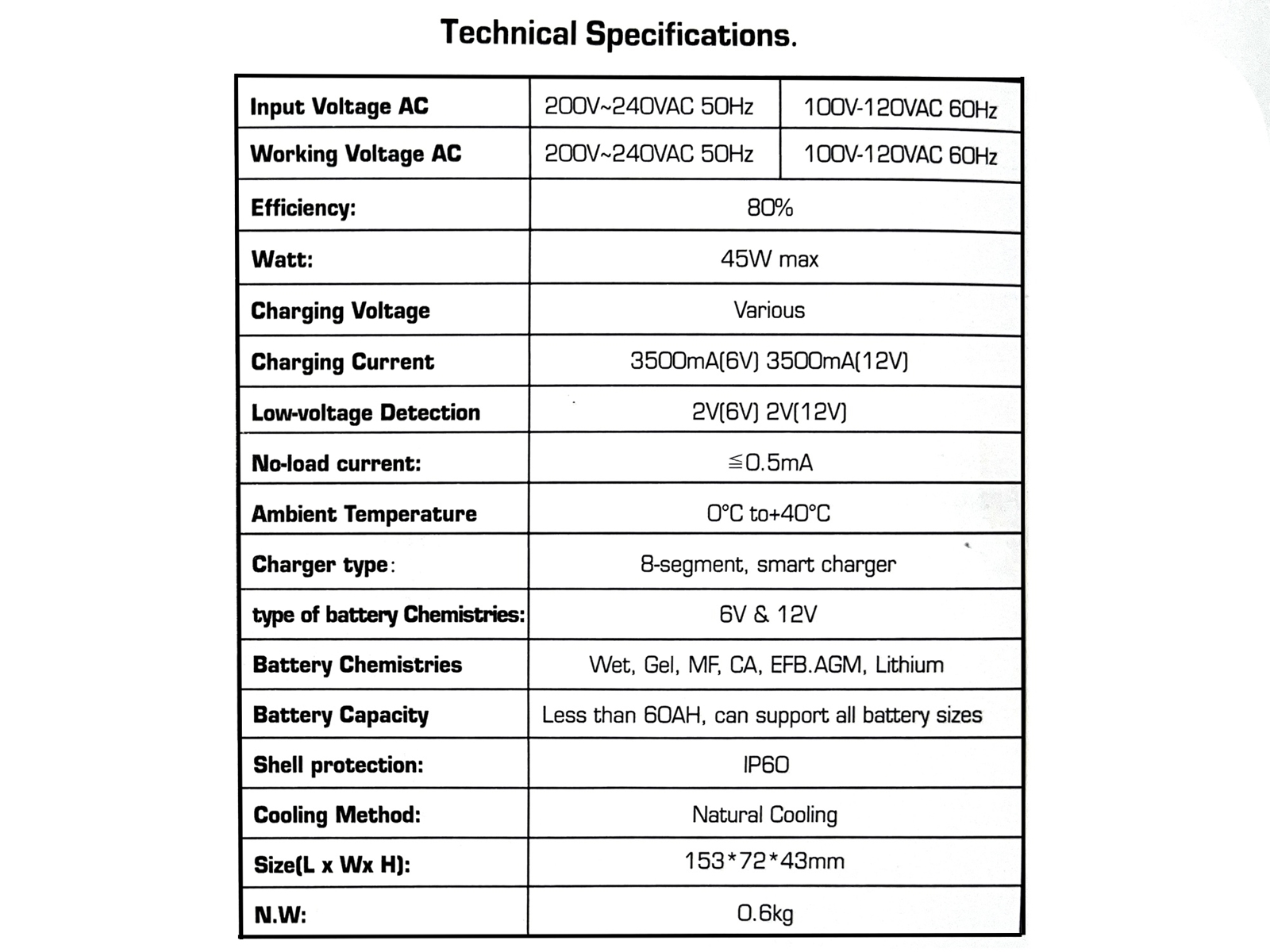 - Reconnaissance automatique du tension de batterie à 6/12V;