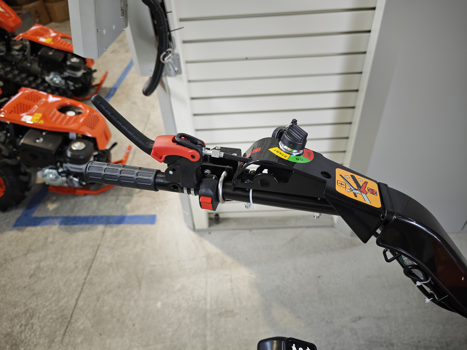 Le blocage du différentiel, activé au moyen d’un levier situé sur le guidon, garantit une meilleure adhérence au sol, même en pente, et permet d’avancer en ligne droite sans difficulté.