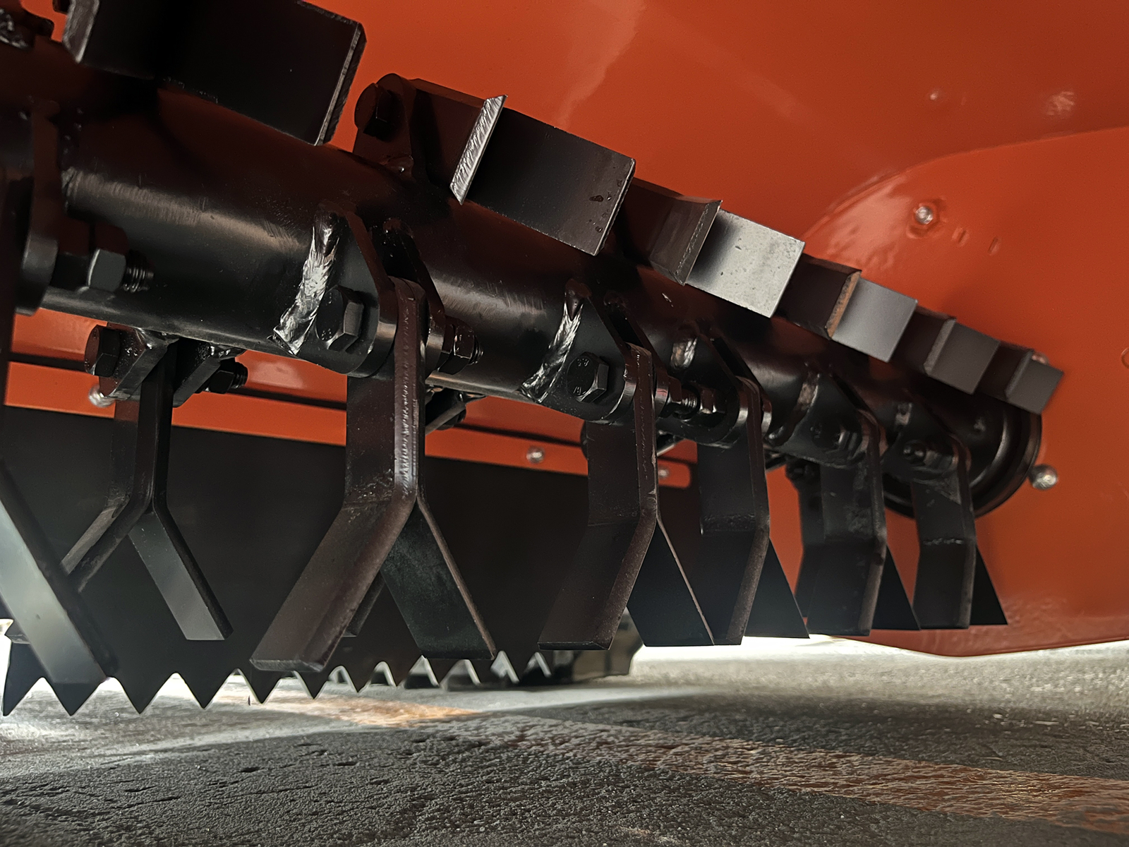 Système de coupe : composé d’un rotor avec des couteaux en Y, qui est la meilleure solution pour pulvériser l’herbe, les branches et les broussailles sans le risque d’endommager la machine en cas de collision avec des pierres ou du matériel ferreux.