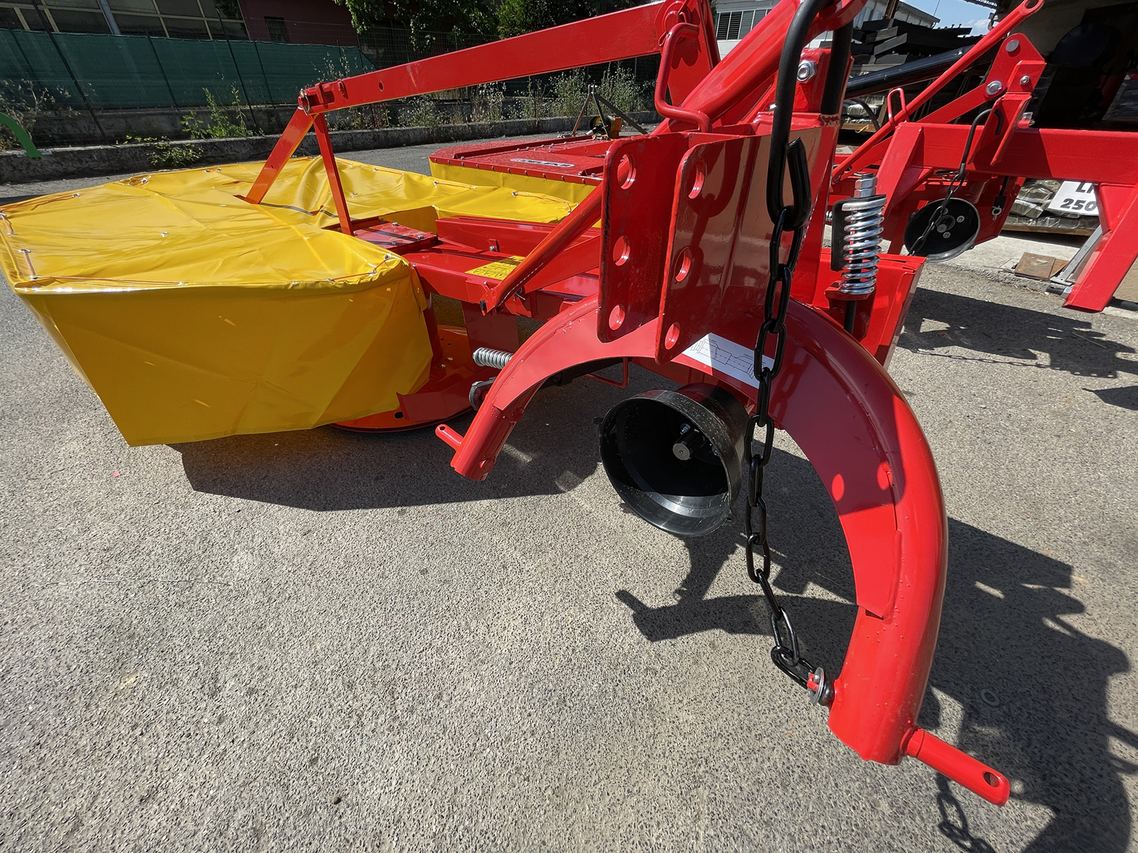 Système de verrouillage à ressort permettant à la faucheuse de surmonter les obstacles et de maintenir la machine en sécurité pendant le transport.