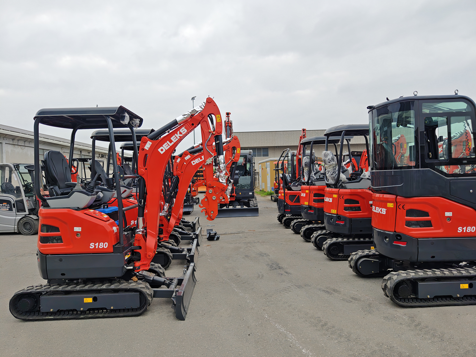 La DELEKS® S180 est une mini-pelle giroscopique équipée d’un moteur diesel Kubota D902 (3 cylindres), d’un système hydraulique à piston axial à cylindrée variable (64,4 L/min), d’un châssis extensible, d’un bras orientable et d’une double vitesse de translation. Conçue pour allier puissance, précision et efficacité professionnelle, elle offre des performances élevées, une faible consommation et une grande douceur de fonctionnement, idéale pour les travaux de construction, d’aménagement paysager et d’entretien urbain, même dans les espaces restreints grâce à son design à déport arrière nul.