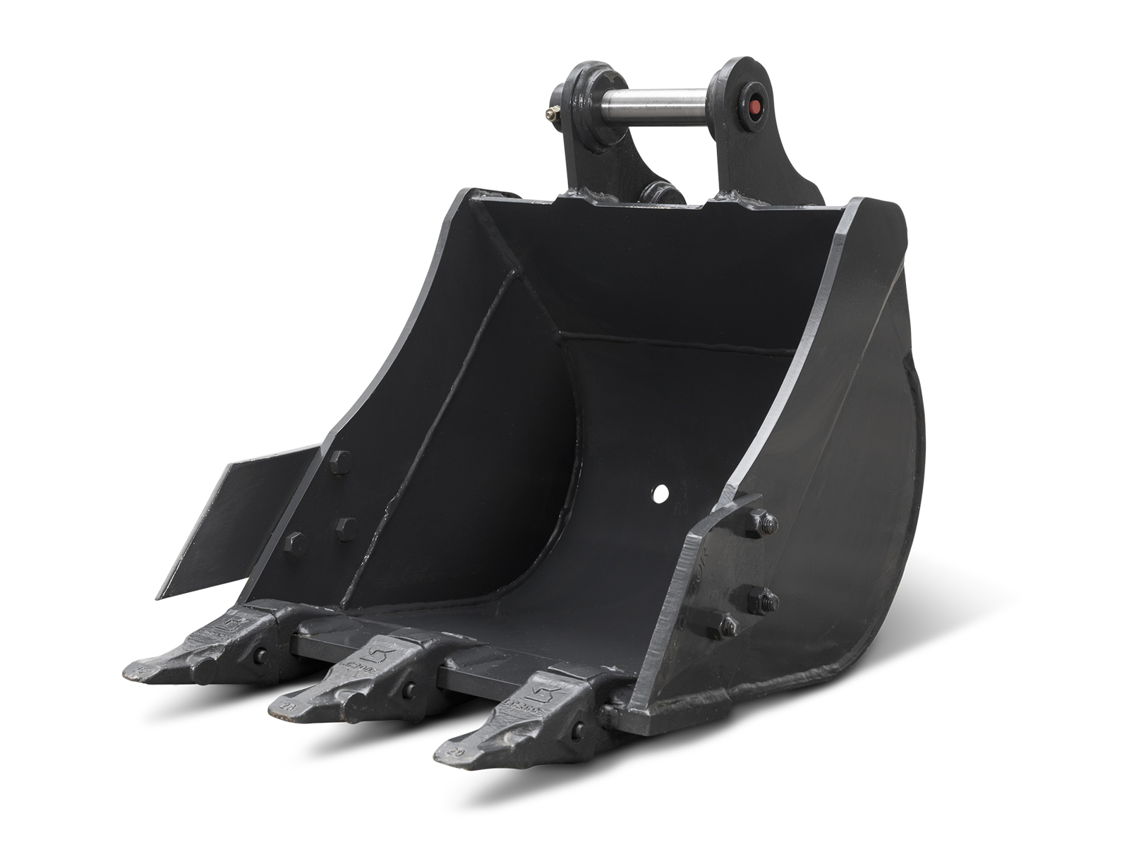 La structure en acier renforcé garantit une excellente résistance aux torsions et une longue durée de vie, même en sols mixtes ou compacts. Le profil du godet offre un bon compromis entre capacité de charge, précision et pénétration dans le sol.