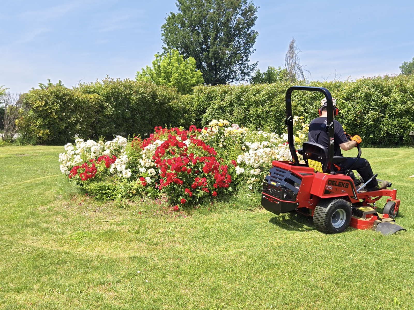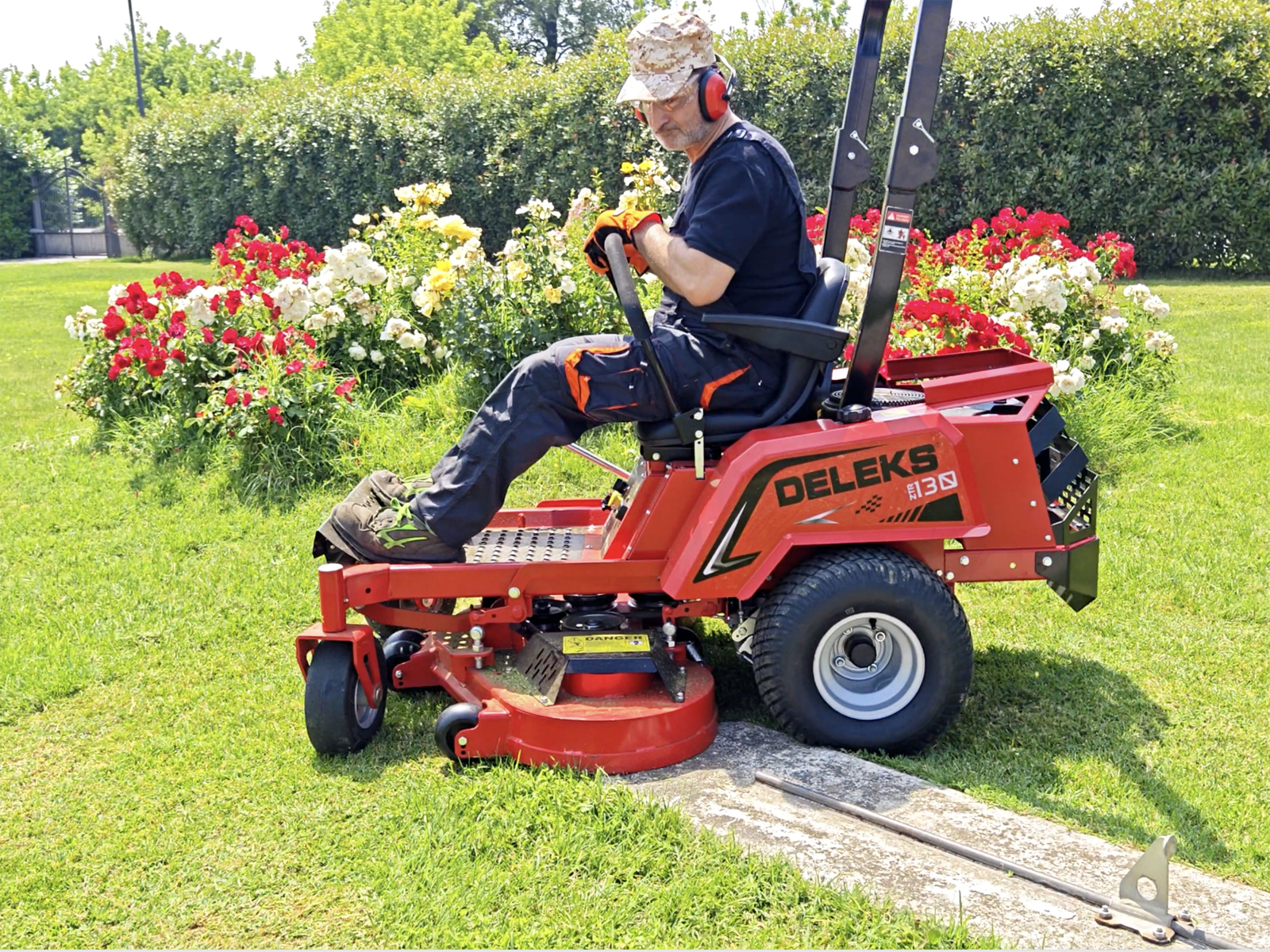 Tondeuse autoportée professionnelle DELEKS® ZTR-130 avec transmission hydrostatique, rayon de braquage zéro, éjection latérale, moteur bicylindre Loncin V-Twin LC-2V80 de 764 cm³ et 25 CV.