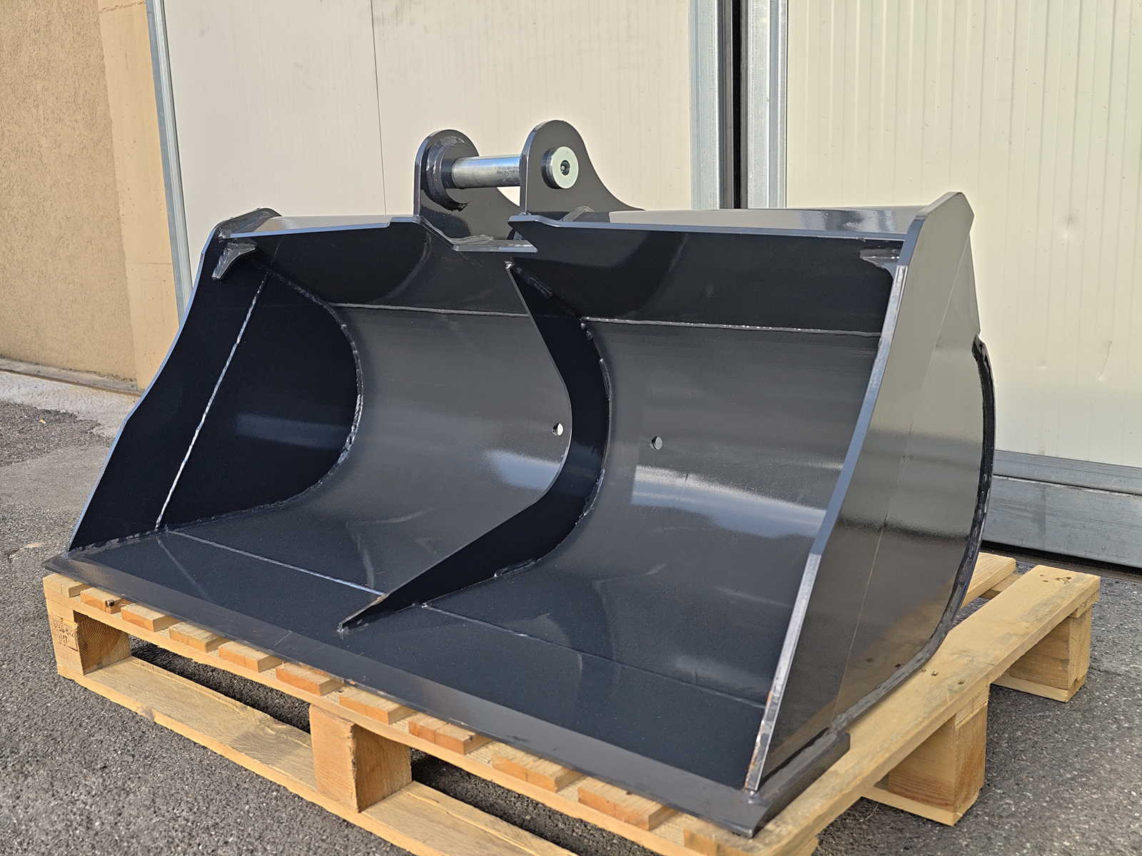 Godet de terrassement DELEKS® de 120 cm conçu pour la minipelle Deleks S380 et pour les machines disposant d’un attelage aux dimensions équivalentes. Sa grande largeur le rend idéal pour la manutention rapide de matériaux légers, le nivellement de grandes surfaces et les opérations de remblaiement.