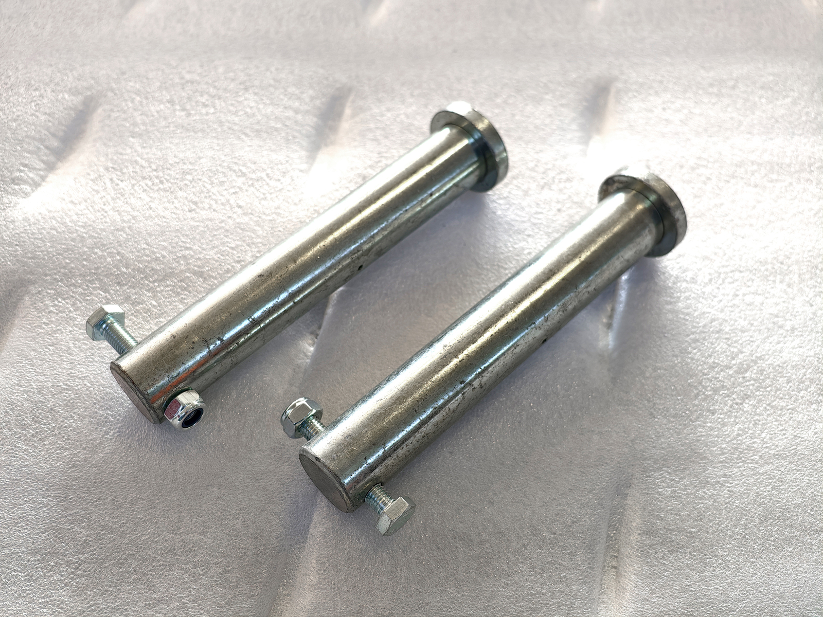 Paire de goupilles ø35 mm pour bras de minipelle avec attache S280, destinés au couplage cinématique d’accessoires tels que godets, ripper, râteaux, tarières et autres outils compatibles. Les axes sont usinés avec précision à partir d’acier haute résistance, avec des surfaces rectifiées garantissant la coaxialité, une finition régulière et la réduction du frottement dans les zones de rotation.