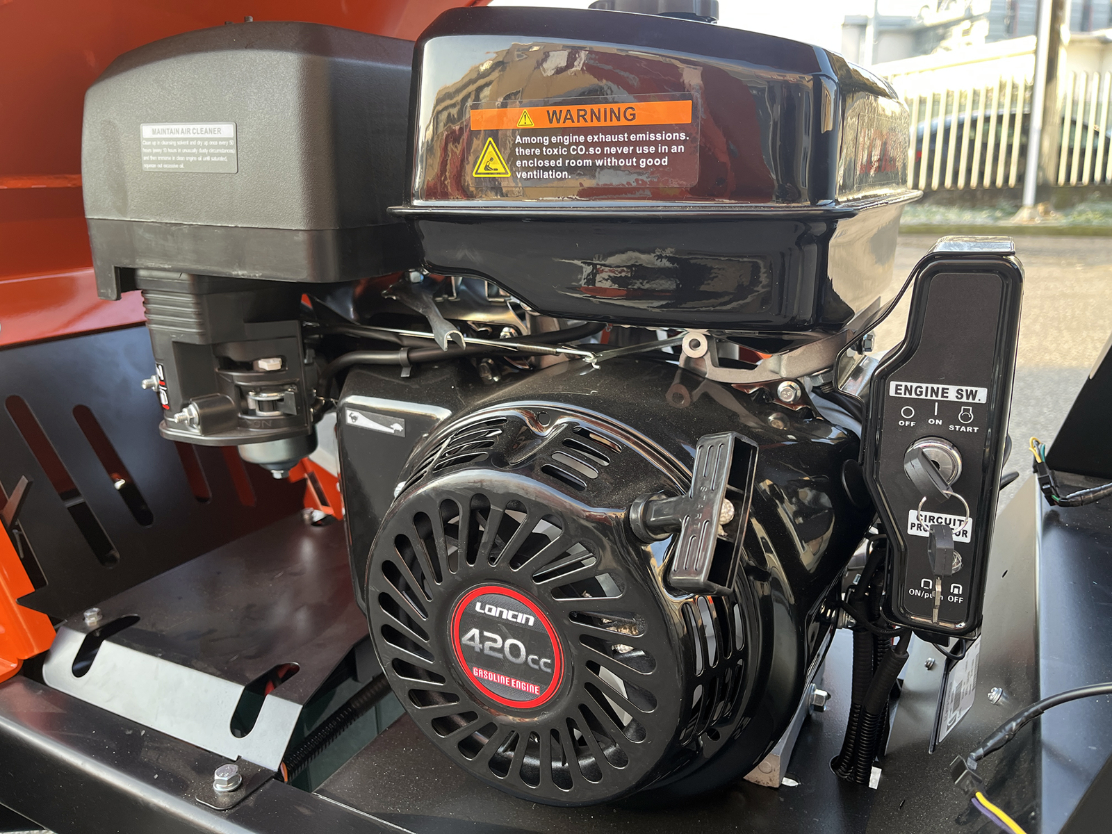 La machine est équipée d’un moteur Loncin de 420 cc avec démarrage électrique à clé, conçu pour concentrer toute sa puissance sur le système de coupe. Cette solution garantit des performances élevées, une fiabilité opérationnelle et une continuité de travail même en conditions d’utilisation intensive.