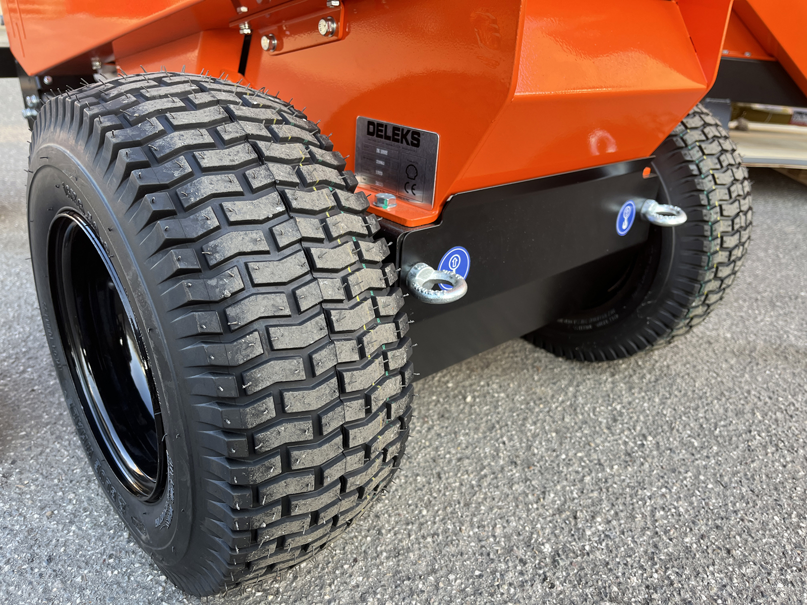 Le broyeur est monté sur un châssis à quatre roues intégré, comprenant deux roues motrices et deux roues pivotantes, entraînées par un moteur électrique. Cette configuration permet des déplacements extrêmement fluides, précis et silencieux, rendant la machine particulièrement adaptée aux jardins, parcs et environnements sensibles au bruit.