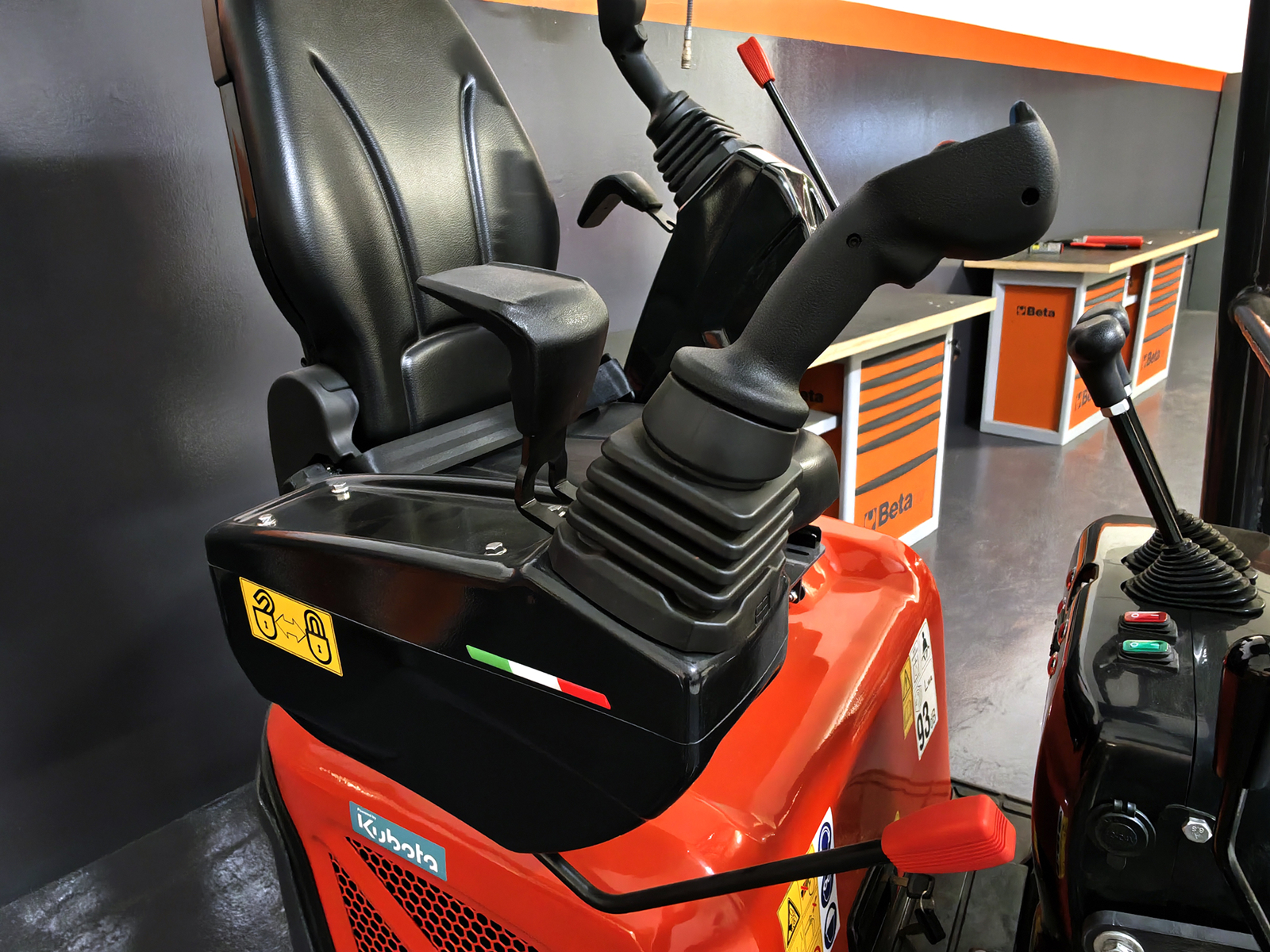 Les joysticks latéraux ergonomiques Made in Italy offrent une position de conduite naturelle et un contrôle précis, tandis que le distributeur hydraulique italien assure des mouvements fluides et constants, même sous charge.